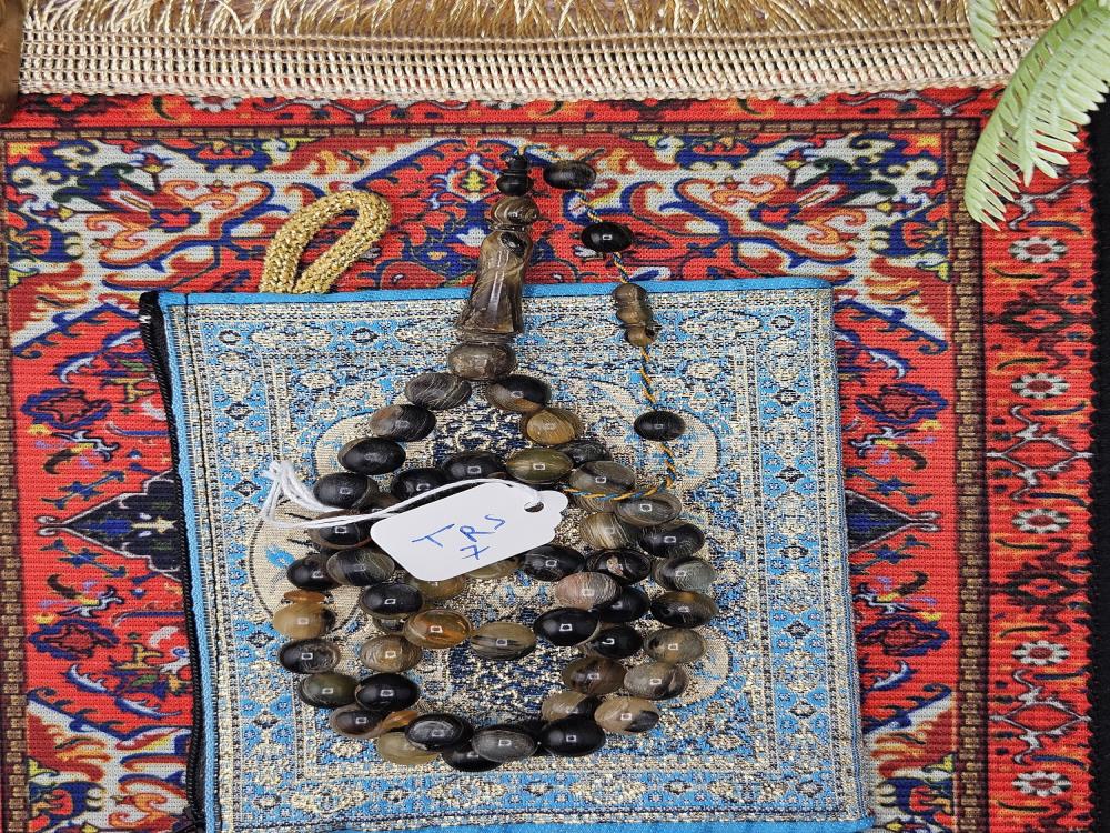 سبحة فاخرة مصنوعة من ظهر السلحفاة الطبيعي، تتميز بلمعانها المميز وألوانها المتداخلة التي تضفي طابعًا تراثيًا أصيلًا، مع نعومة في الملمس وانسيابية في التسبيح، لتجمع بين الجمال والندرة في آن واحد.