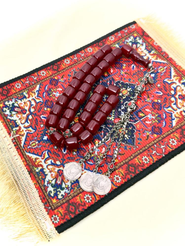 سبحة أنيقة مصنوعة من الفاتوران التركي، تمتاز بلونها العتيق ولمعانها المميز، مع خامة متينة وملمس ناعم يمنح راحة وانسيابية أثناء التسبيح، لتجمع بين الفخامة والقيمة التراثية.