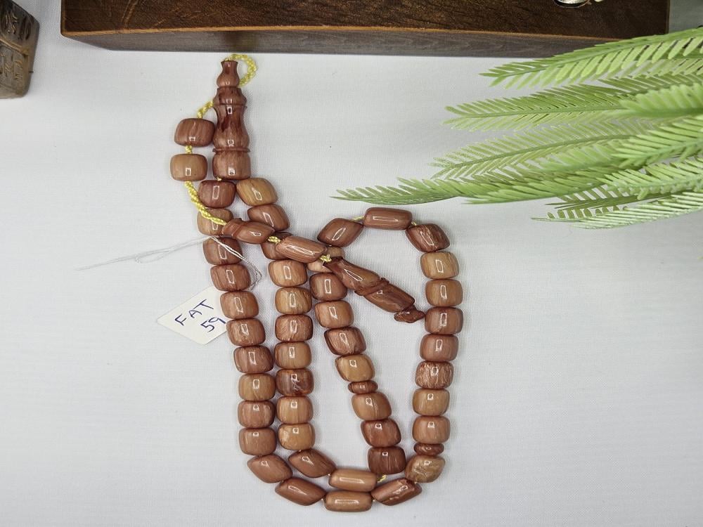 سبحة الفاتوران تتميز بجمالها الكلاسيكي وقيمتها العالية، إذ تُصنع من مادة الفاتوران القديمة ذات اللمعة الدافئة والألوان المتدرجة التي تزداد جمالاً مع الاستخدام. تعتبر من القطع الفاخرة التي تجمع بين الأصالة والفن، وتُقتنى غالباً لهواة التحف والمقتنيات المميزة.